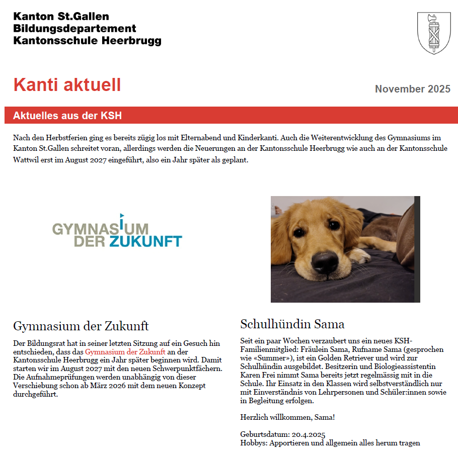 Gerne möchten wir mehr aus dem Innenleben der Kantonsschule Heerbrugg berichten.